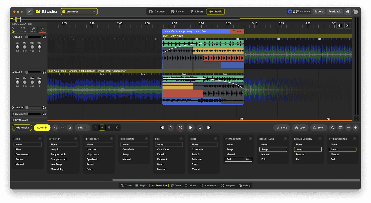 The automation lanes let you customize parameters over time, allowing you to create expressive and creative mixes. The transition editor provides you with a bunch of quick presets, or you can dive deeper into the manual mode and customize the transitions in as much detail as you want.Export Your Mix - When you're happy with your mix, it's time to send it to one of many locations. In local file mode, you can:
