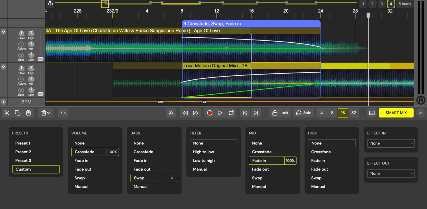 Implement the best transitions to blend your tracks. and create your signature sound with our 14 default effects and your own unique automations.
